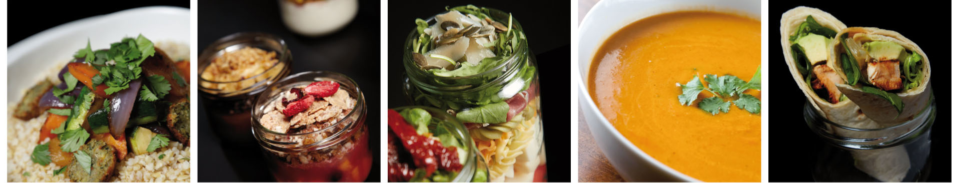 Plats chauds, salades en "JAR", desserts, soupes, wraps et bien plus encore